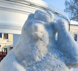 Участники фестиваля ледово-снежных скульптур «Кострома — Зимняя сказка» сейчас находятся в активном процессе создания шедевров В Костроме 3 февраля официально стартовал традиционный фестиваль ледово-снежных скульптур, который в этом году посвящен Году единства народов России. Одной из самых заметных работ первых дней конкурса стала масштабная фигура медведя под названием «Генерал Топтыгин». Над созданием снежного гиганта трудится