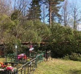 Инцидент произошел в Судиславле В Костромской области гигантская сосна рухнула прямо на могилы в начале местного кладбища. Кадры с места событий опубликовало издание SMINEWS в Судиславле. Происшествие произошло 21 апреля во время сильнейшего ветра. В тот день в регионе действовало метеопредупреждение. Как сообщает издание, рухнувшее на кладбище дерево повредило только несколько оградок. Никто не пострадал.