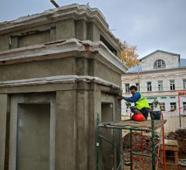 Реставрация исторической арки выходит на финишную прямую Реставрация входной группы парка «Центральный» в Костроме подходит к завершению. Об этом сообщил глава города Алексей Смирнов в соцсетях. Основные реконструкционные работы уже выполнены. Сейчас специалисты занимаются отделкой: штукатурят арку, очищают и окрашивают металлические элементы. Рядом установили временный павильон — в нем мастера восстанавливают рельеф и утраченные детали