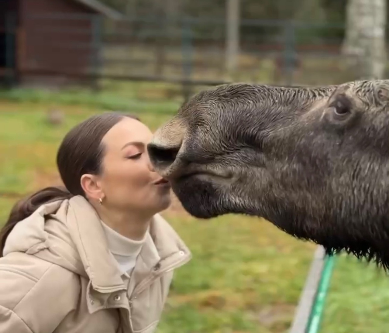 17 октября журналистка опубликовала новые кадры, теперь с лосефермы. Девушка пообщалась с работниками питомника, покормила сохатого морковкой и даже чмокнула его в носик.